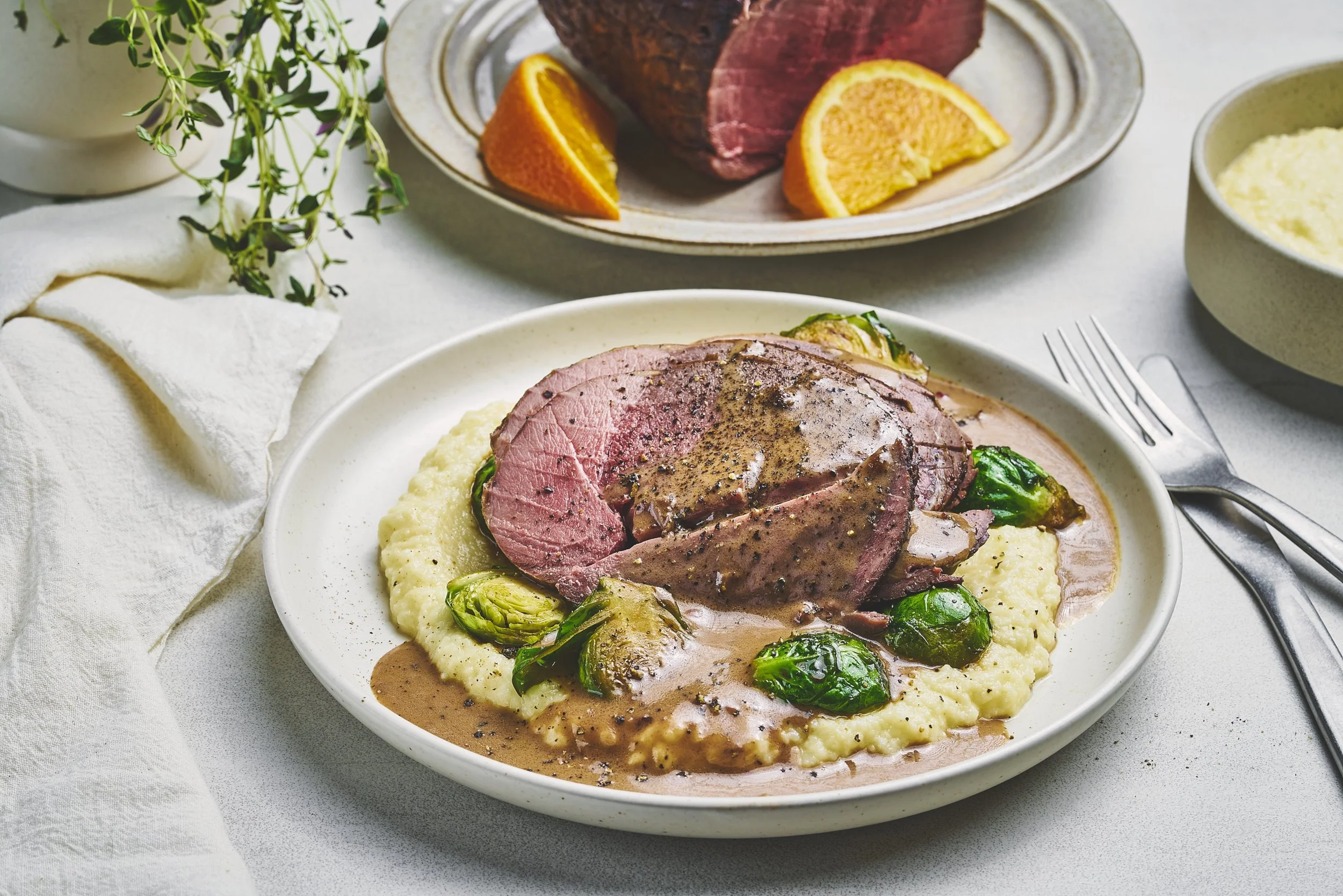 Ta steken ut av ovnen og la den hvile i minst 10 minutter før den skjæres opp. Dette gjør at kjøttsaften fordeler seg jevnt i kjøttet.